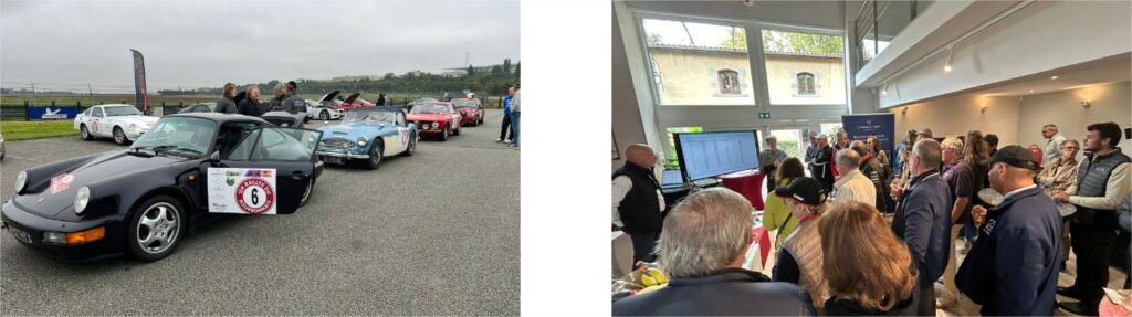 Le dimanche matin après des formalités d’entrée sur le circuit, qui sont propres à Michelin (et oui, Ladoux est d’abord un centre de recherche…), et le briefing par notre prestataire Nomad, les amateurs de piste ont pu profiter pleinement de leurs autos – certaines s’étant même miraculeusement transformées pendant la nuit, ainsi a-t-on vu une Audi TTS réapparaitre en Clio Williams, au son et au tempérament rageur, ou encore, une XK 120 OTS faire un bon de 75 ans et se réveiller en F-Type!… On peut dire qu’après quelques tours de pistes et échanges sur la pitlane, fléchés allemands et calculs des spéciales de la veille étaient oubliés! Vers 12h30 tout le monde se retrouvait au Domaine de La Prade situé à deux pas du circuit, en présence de certains des sponsors, pour le cocktail de remise des prix, agrémenté de l’excellent Champagne millésimé offert par notre partenaire, la Maison Rigaut & Poret.